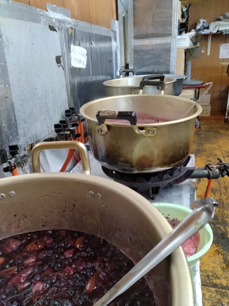 今日は、1日ジャム作りやりました~真夏のジャム作りは、暑さでしんどかったですが、今日はま―ま―快適に作業出来ました。大きな鍋で、コトコト煮てます。 -