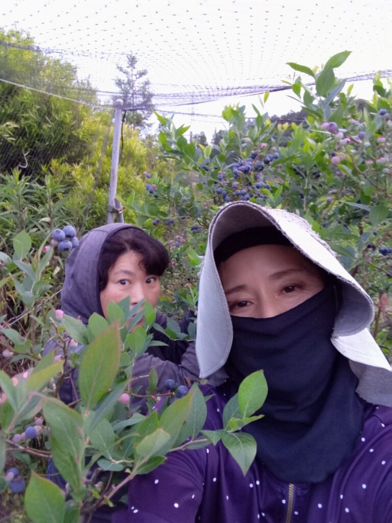 ブルーベリーの郷です。観光農園は、まだ開園していません。 明日は雨らしいです。実った果実が痛むので、せっせと収穫です。19時過ぎ、暗くなってきました。 「見えなくなってきたねぇ」「暗くなってきたねぇ」 二人でブツブツ。 「投光器が欲しいね電源... -