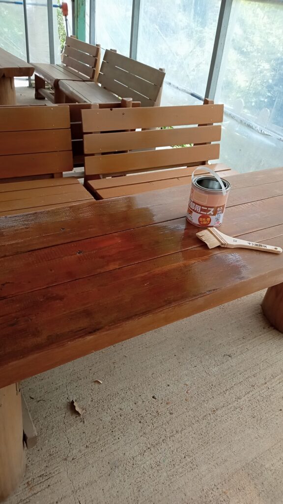ブルーベリーの郷です。休憩所のテーブルとイス、これらも自作です。 そろそろ、ニスが剥がれてきたところが目立つようになりました。 コロナで、随分使われていなかったテーブル。今年も分からないけれど、お手入れをしましょう! 無事なシーズン開始(6... -